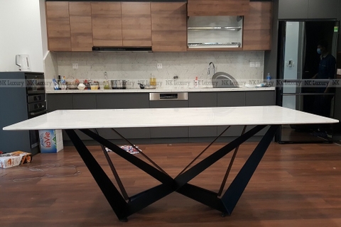 Bàn ăn hiện đại BA21 - Mặt đá chân thép sơn tĩnh điện