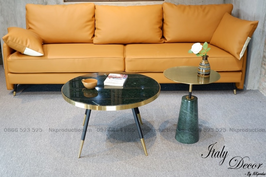 1. Bàn trà Band mặt đá cẩm thạch xanh India hiện đại